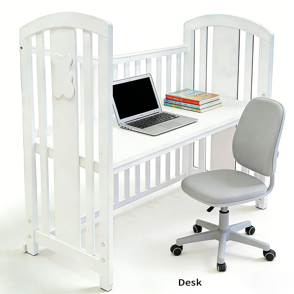 *4 合 1 變形嬰兒床: 能從嬰兒子母床(床墊需另購)轉換為幼兒床,遊戲床,書枱。